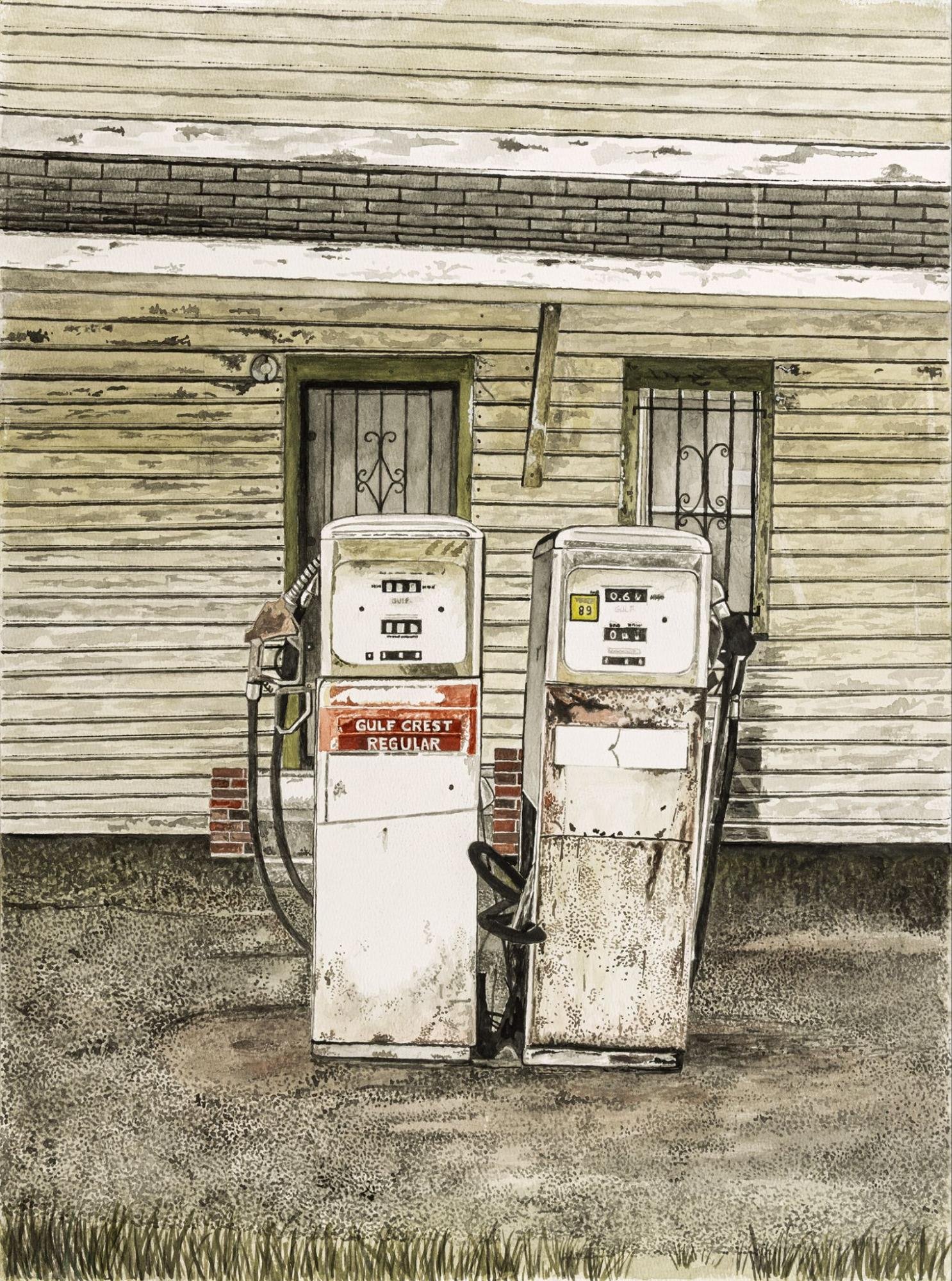 Two weathered pumps stand like sentinels of another era—chipped paint, faded logos, and quiet lines that hint at countless journeys begun here. In this still moment, the scene becomes a parable: preparation matters. Like the wise who carried oil for the long night, we are reminded to keep our “vessels” filled—hearts ready, faith tended, hope supplied. The worn metal and sun-bleached enamel testify to time’s passage, yet the call endures: be watchful, be supplied, be steadfast. “All in the Vessels” invites viewers to look beyond nostalgia and see a faithful readiness that fuels the road ahead.