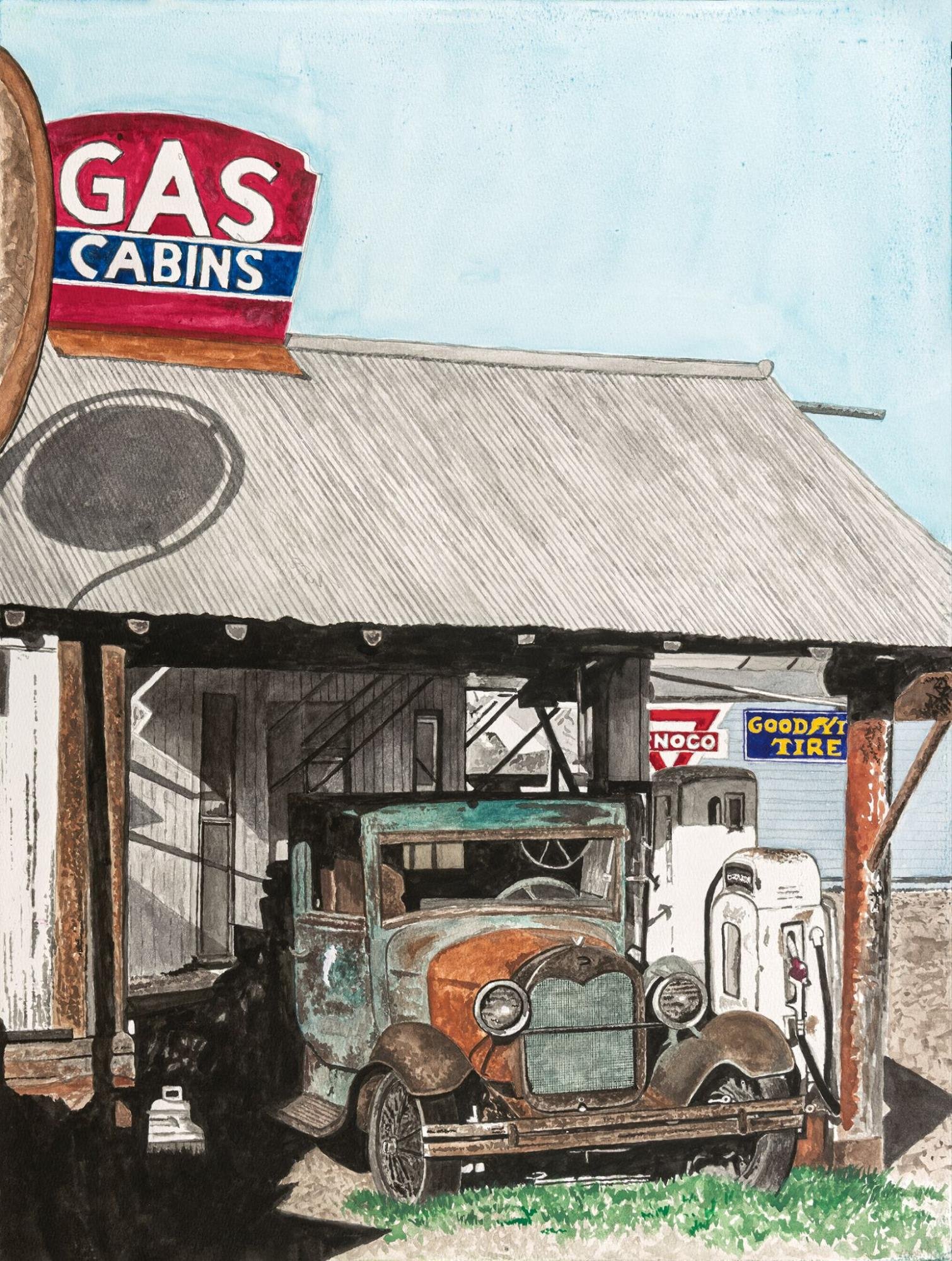 The piece shows a vintage John Deere tractor. This tractor sits center stage like a relic in a small museum of memory.